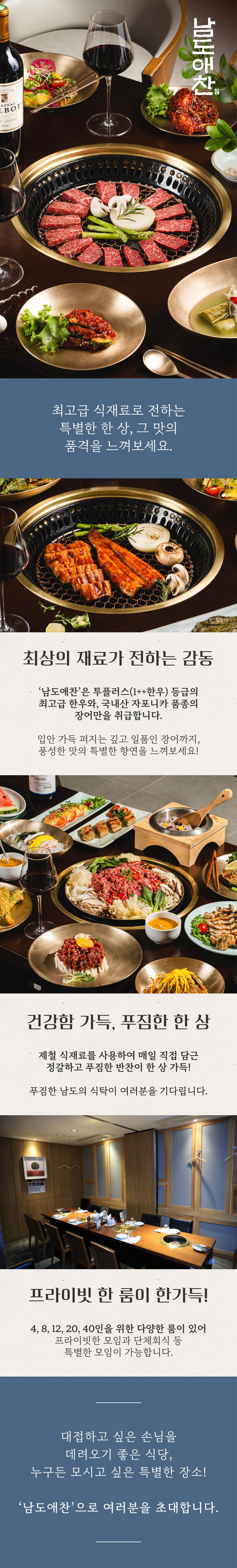 대접하는 마음이 머무는 곳, 남도애찬에서 당신의 순간을 더 빛내보세요.
